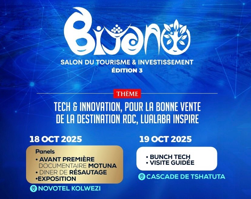 Sous le thème “Tech & Innovation, pour la bonne vente de la destination RDC, Lualaba inspire”, la 3ᵉ édition du Salon du Tourisme & Investissement – BIVANO réunit les acteurs du tourisme, de l’innovation et de la technologie pour promouvoir la destination RDC.
